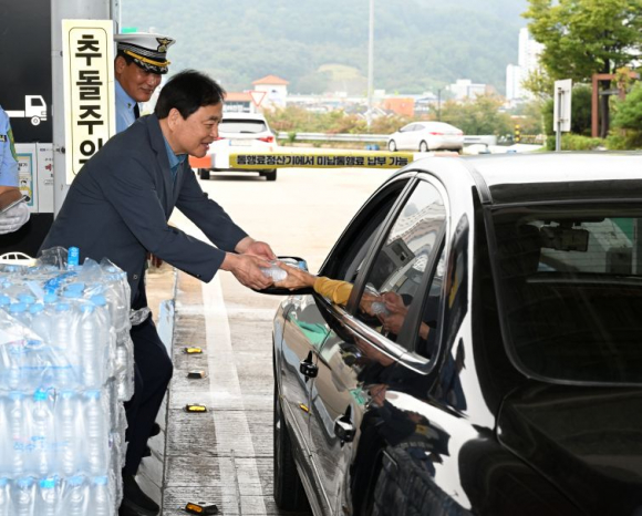 이날 캠페인에서는 추석 명절을 맞아 그리운 고향을 방문하기 위해 먼 길을 달려온 귀성객들에게 시원한 생수 1,000개와 김천홍보 팸플릿을 나눠줬으며, 전 좌석 안전벨트 착용, 차량 간 안전거리 유지, 운전 중 휴대전화 사용금지 등 안전운전 수칙을 함께 당부했다.