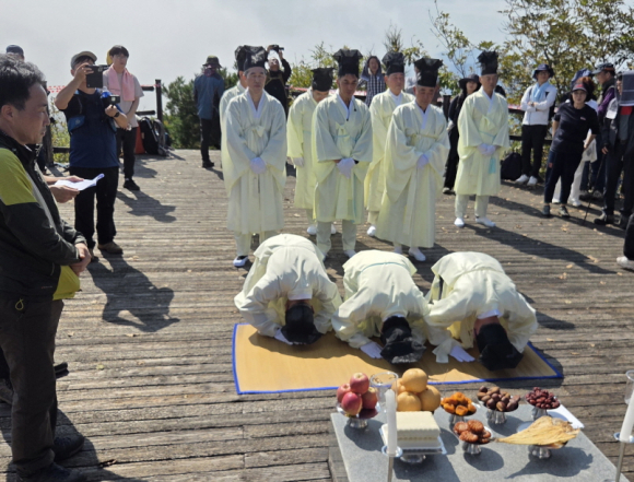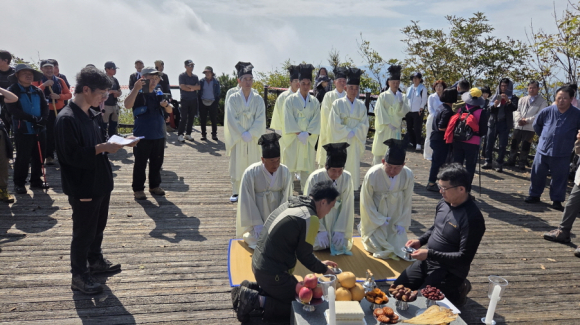 | ‘삼도봉 만남의 날’은 경북 김천시, 충북 영동군, 전북 무주군이 매년 돌아가며 주관해 온 행사로, 올해로 37회를 맞았다. 행사장에 세워진 거북과 용, 검은 여의주가 상징된 기념탑 아래에서 주민들은 기원제를 지내고, 각 지역의 문화와 현안을 공유하며 화합과 교류의 의미를 되새겼다.