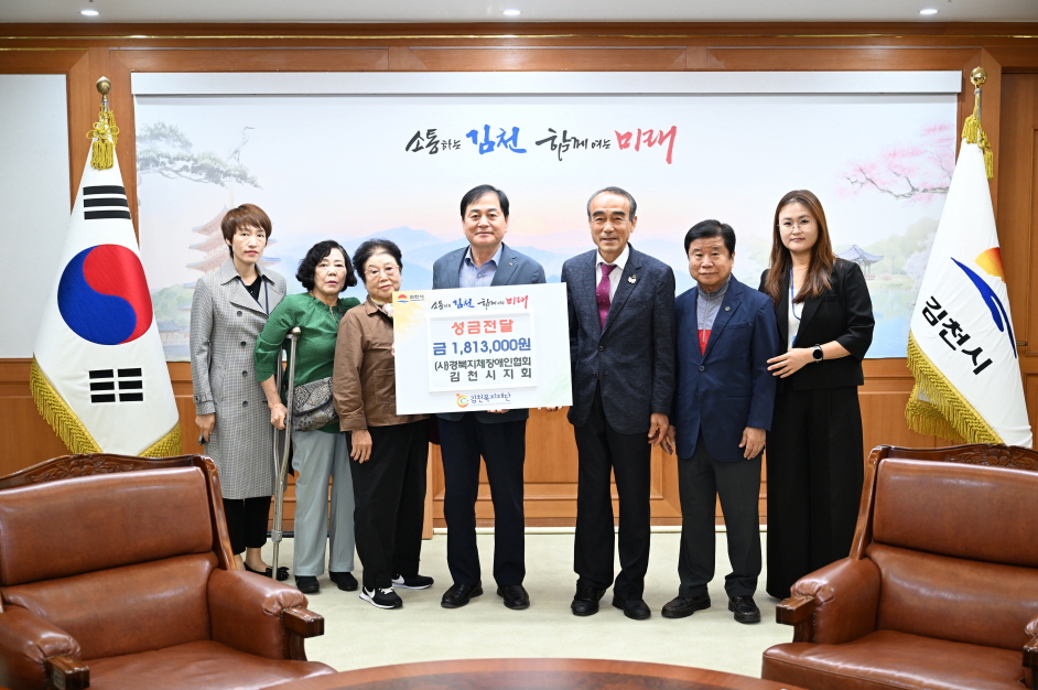 | (사)경북지체장애인협회 김천시지회는 10월 10일 김천시청을 방문해 김천복지재단에 기부금 183만 원을 전달했다.