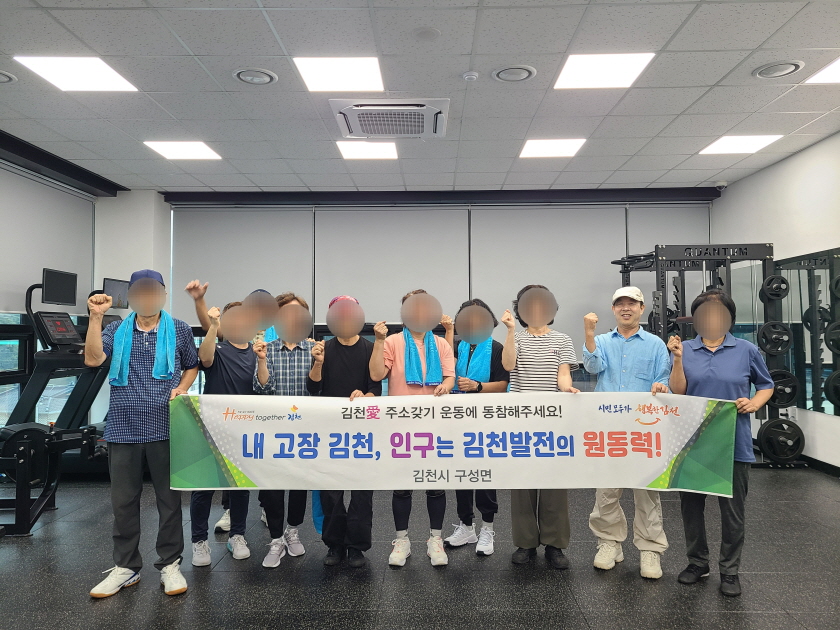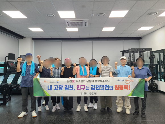 | 김천시 구성면(면장 김경민) 주민 헬스 동아리 ‘헬스타임’(회장 최용남)은 10월 13일 구성면 일원에서 ‘건강한 삶, 행복한 구성면에서!’를 주제로 인구 증가 캠페인을 펼쳤다.