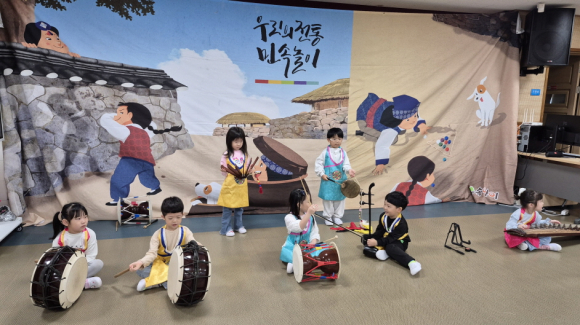 다문화교육 정책학교 일환으로 반별로 강당에서 진행된 이번 체험행사는 숲속아이에서 유치원에 방문하여 실시하였다. 양일간 진행된 이번 행사는 첫째날은 전통악기 체험 둘째날은 전통놀이 체험으로 이루어졌다. 전통악기에는 북,장구,가야금,꽹과리,해금등 악기를 탐색해 본 뒤 음악에 맞춰 합동연주도 해보았다. 전통놀이에는 윳놀이, 팽이돌리기, 고무신 던지기, 버나 돌리기 등 아이들이 흥미 있는 놀이로 마련이 되었다.
