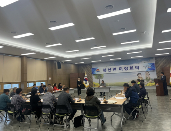 회의에 앞서, 이진숙 봉산면장은 “바쁜 농번기에도 불구하고 지역을 위해 애써주시는 이장님들께 감사드린다. 앞으로도 주민 불편을 줄이고 지역발전을 도모하기 위해 행정과 마을 간의 소통을 더욱 강화해 나가겠다.”리고 인사말을 건넸다.