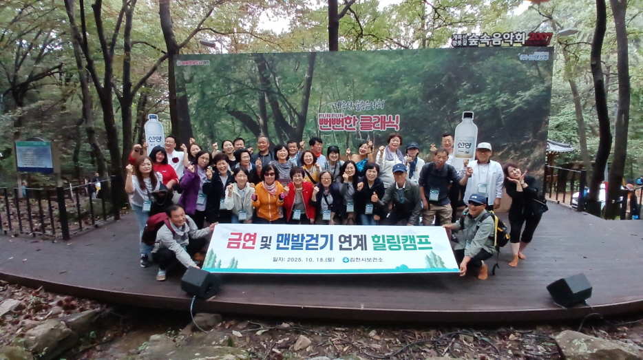 | 김천시(시장 배낙호)는 시민들의 금연 의지를 강화하고 건강한 생활 습관을 확산하기 위해 지난 10월 18일, 대전광역시 우암사적공원과 계족산 황톳길 일원에서 ‘금연 및 맨발 걷기 연계 힐링캠프’를 운영했다.