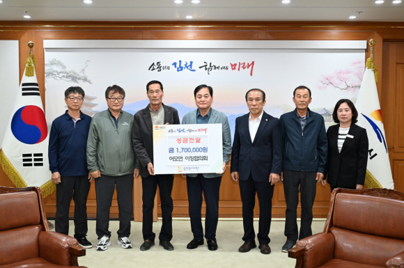 배낙호 김천복지재단 이사장은 “항상 잊지 않고 따뜻한 마음과 희망을 전달해 주시는 어모면 이장협의회에 감사의 인사를 전한다. 마음과 정성을 모은 성금이 뜻깊게 쓰일 수 있도록 필요한 곳에 잘 전달하겠다.”라고 밝혔다.