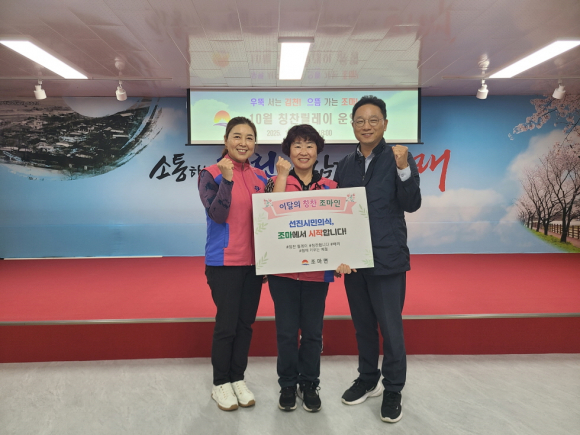 이날 진행된 칭찬 릴레이에서는 생활개선회 양금순 회원이 만장일치로 추천을 받아 이달의 칭찬 조마인으로 선정됐다. 양금순 회원은 평소 책임감 있고 성실한 자세로 생활개선회 운영을 든든히 지원하며, 지역사회 발전과 주민 화합에 앞장서 신뢰를 받아왔다.