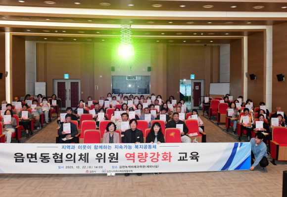 임재춘 복지기획과장은 “읍면동협의체는 행정이 닿지 못하는 복지의 사각지대를 가장 먼저 발견하고 이웃의 손을 잡아주는 지역 복지의 최일선이다. 이번 교육이 위원 한 분 한 분이 지역의 복지 리더로 성장하는 소중한 밑거름이 되길 바란다.”라며, “앞으로도 협의체가 중심이 되는 ‘생활 속 복지공동체’를 실현하고, 시민이 체감할 수 있는 김천형 맞춤 복지 모델을 만들어가겠다.”라고 말했다.