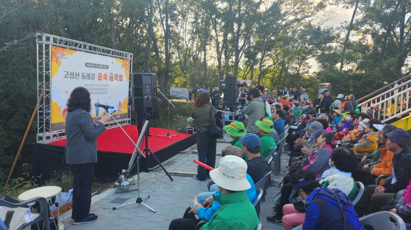 행사는 정심사 입구와 시립도서관을 출발지로 하여 고성산 전망대까지 걷는 ‘둘레길 걷기 행사’로 시작되었으며, 이어서 펼쳐진 음악회에서는 트로트, 통기타, 팬 플루트, 각설이 등 다채로운 공연이 이어져 관람객들의 큰 호응을 얻었다.