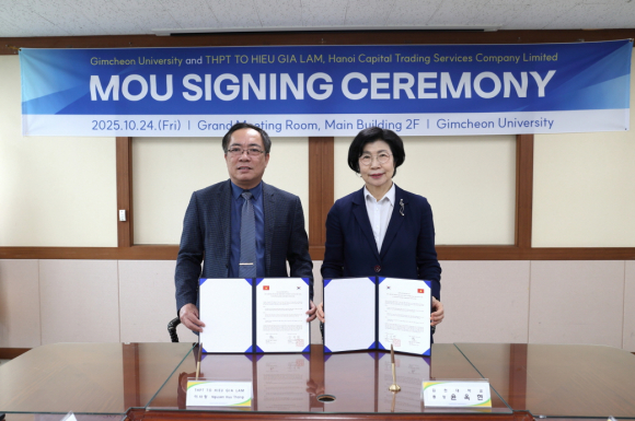 | 김천대학교(총장 윤옥현)와 베트남 TO HIEU GIA LAM 고등학교(이사장 응우엔 후으 땅)는 10월 24일, 13시 김천대학교 본관 대회의실에서 교육 교류 및 인재 양성을 위한 업무협약(MOU)을 체결했다.