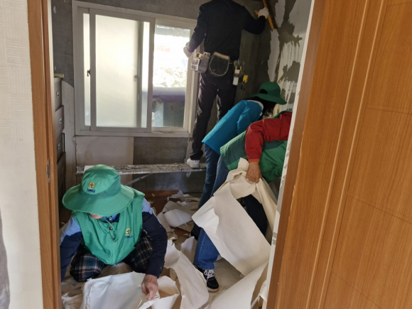 이번 봉사는 사전 조사를 통해 주거환경 개선이 필요한 가정을 선정해 진행됐으며, 회원들은 노후화된 벽지, 장판, 주방 싱크대를 새로 교체하고 집안 곳곳을 정리하며 쾌적하고 안전한 보금자리를 만들기 위해 구슬땀을 흘렸다.