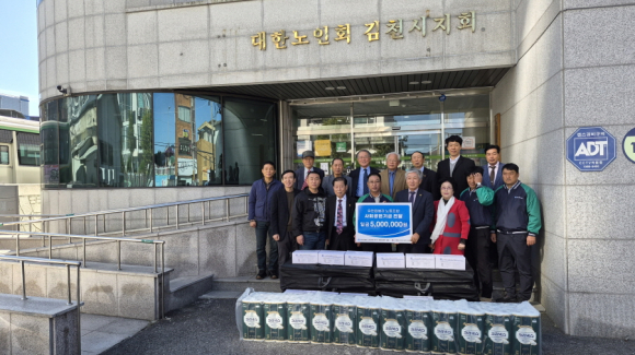 | 지난 10월 27일 김천시 관내 유한킴벌리(노조위원장 채용섭) 기업체에서는 김천노인회(지회장 이부화)에 어르신 복지 증진을 위한 기부금 500만원을 전달했다.