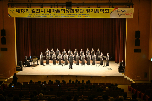 올해로 13회를 맞은 새마을여성합창단의 정기음악회에는 배낙호 김천시장을 비롯해 300여 명의 김천시민과 새마을지도자들이 참석했으며, 합창단은 김운 바리톤의 지휘와 석은혜 피아니스트의 반주에 맞춰 ‘아리랑’,‘맘마미아’,‘인연’,‘수고했어 오늘도’ 등 대중에게 친숙한 노래 10여 곡을 선곡해 그동안 갈고 닦은 기량을 관객들에게 선보였다. 또한, 노윤지 바이올리니스트와 김준우 교수의 관현악 초청공연까지 더해져 연주회에 참석한 시민들에게 더 큰 감흥을 선사했다.