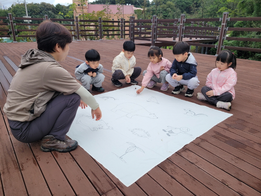 유아들은 시원한 가을바람을 맞으며 숲을 산책하고 가을이 되어 달라진 아름다운 풍경을 감상했다. 숲길에 가득 떨어진 도토리를 주워 도토리 팽이를 만들기도 하고 예쁜 색깔의 꽃과 나뭇잎을 모아 손수건을 물들여 보며 손수건에 가을의 색을 담아보았다. 유아들은 직접 만든 팽이와 손수건을 자랑하며 “제 손수건은 단풍잎 색이예요!”, “도토리 팽이가 진짜 잘 돌아가요!”라며 즐거움을 표현했다. 또한 넓은 잔디밭에서 친구들과 함께하는 달리기와 잡기놀이 시간은 유아들에게 큰 즐거움을 주었다. 김천신일초병설유치원은 녹지로 둘러싸인 자연환경 속에서 매주 목요일 숲놀이 및 산책활동을 실시하여 유아들이 자연 속에서 놀이하며 건강한 신체·정서발달을 토대로 전인적 성장을 하는 데 교육중점을 두고 있다. |