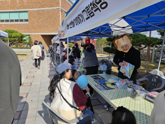 | 체험 부스에서는 고수진 그림책 작가와의 만남, 그림책 읽고 만들기 체험, 동화구연, 도서관 탐험 미션, 책 만들기 등 책과 관련한 다양한 활동을 운영했고, 무료 먹거리, 비눗방울 놀이, 동물 풍선 등 행사장 곳곳에 즐거운 웃음이 가득했다.