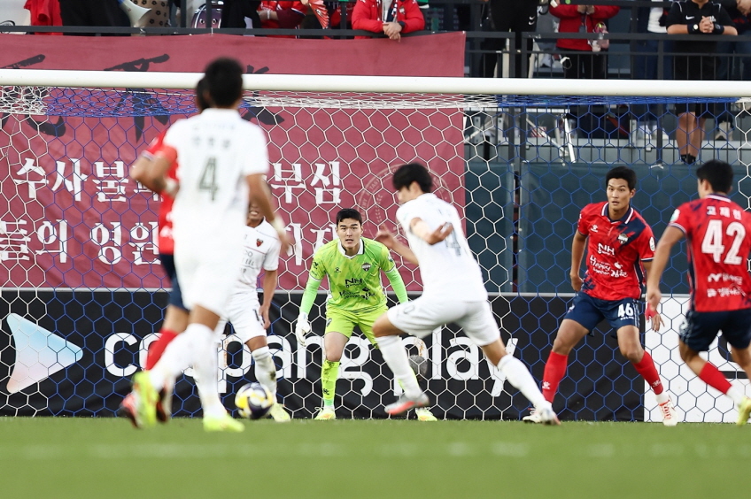 전반이 끝나갈 무렵 결정적인 장면이 나왔다. 포항의 수비 사이로 침투하는 고재현에게 이찬욱이 완벽한 스루패스를 찔러 넣었다. 이를 고재현이 슈팅으로 마무리했지만, 아쉽게 빗나가고 말았다. 포항도 크로스바를 스치는 슈팅으로 반격했다. 추가시간은 2분이 주어졌고, 득점 없이 전반전이 종료되었다.