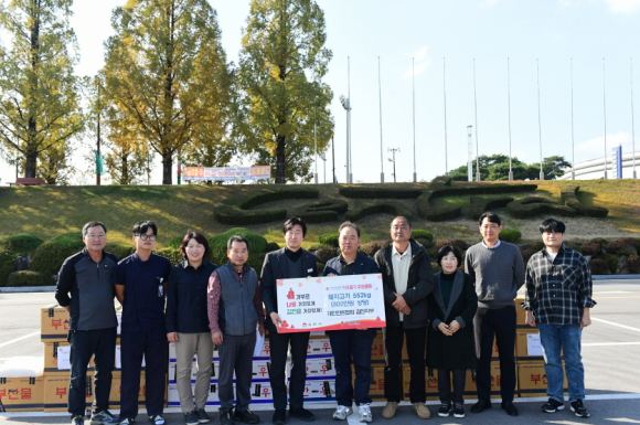 | 김천시(시장 배낙호)는 지난 11월 4일, 대한한돈협회 김천지부(지부장 김이동)로부터 불고기용 돼지고기 552kg(800만 원 상당)을 전달받았다고 밝혔다.