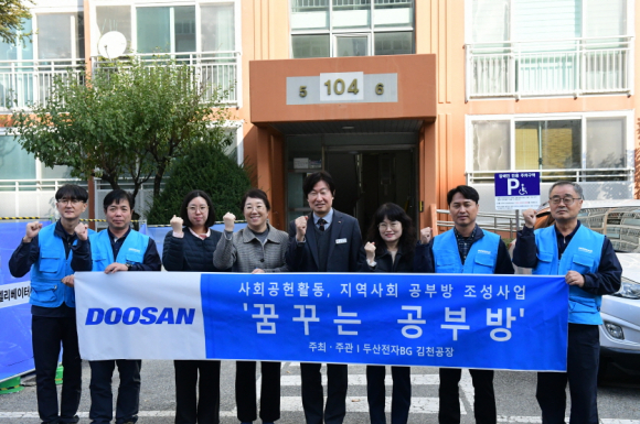 최영식 ㈜두산전자 김천공장장은 “지역사회와 함께 성장하기 위해서는 아이들의 미래를 밝히는 일이 무엇보다 중요하다.”라며, “앞으로도 김천시와 협력해 교육 취약계층을 위한 지속 가능한 사회공헌 활동을 이어가며 아이들이 희망을 잃지 않고 건강한 사회 구성원으로 성장할 수 있도록 지원하겠다.”라고 말했다.