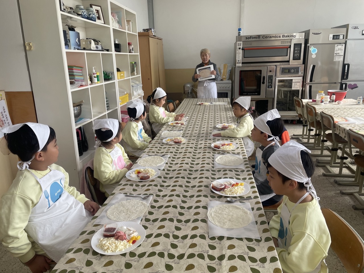 유아들은 에제르 스쿨에 도착하여 먼저 피자 만들기 체험을 진행하였다. 피자 위에 올라가는 토핑들을 관찰한 후 재료를 올리며 “내 피자 완성!”, “햄 냄새가 좋아요!”라고 이야기하며 즐겁게 참여하였다. 이어진 ‘쿠키 만들기 체험’에서는 직접 모양틀을 사용에 쿠키를 만들고 초콜릿과 땅콩을 이용해 꾸며보았다. 아이들은 자신이 꾸민 쿠키를 보며 기대와 설렘을 표현하였다.