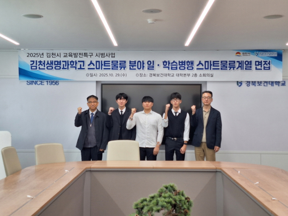 이번 경북보건대학교 스마트물류과 2026학년도 수시 전형 면접고사에 참여한 김천생명과학고등학교 졸업예정자 학생들은 2024년부터 2025년까지 ▲스마트물류 진로개발 및 산업체 특강 ▲유통관리사⦁지게차⦁드론 1종 자격증 취득 ▲물류 현장기업 탐방 등의 과정한 이수한 학생들로 2026년 01월 GS 네트웍스 경산물류센터에 입사한다.