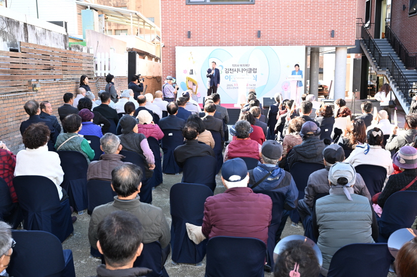 이날 행사는 김천시니어클럽 노인일자리 사업단인 시니어열차문화예술단의 축하공연으로 막을 열었으며, 경과보고, 기념사, 축사, 테이프 커팅, 시설 라운딩 순으로 진행됐다.