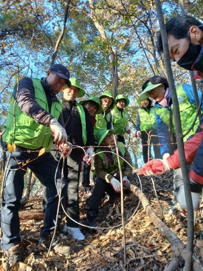 | 김천시 지좌동 자연보호협의회(위원장 강금자)는 지난 11월 14일 관내 까치산에서 불법 설치된 올무 제거 활동을 실시했다.