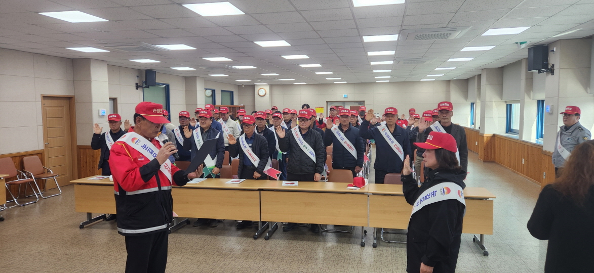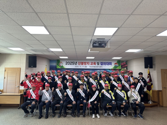 | 김천시 어모면은 11월 17일 오전 11시 어모면 행정복지센터 2층 회의실에서 2025년 산불방지 교육과 결의대회를 개최했다.