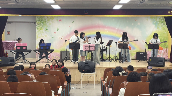 | 김천부곡초등학교(교장 박재일)는 지난 11월 10일부터 14일까지 늘봄학교 프로그램의 일환으로 ‘작은 음악 페스티벌’을 개최하였다. 이번 음악회는 학생들이 늘봄학교 프로그램에서 갈고닦은 실력을 선보이는 두 번째 무대로, 학부모와 재학생 등 많은 관람객이 자리를 메우며 행사의 열기를 더했다.