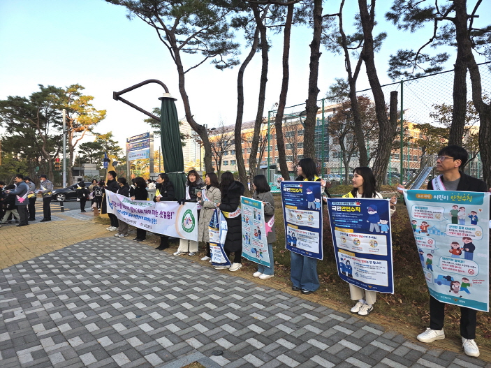 | 경상북도김천교육지원청(교육장 모태화)은 11월 19일 오전 8시 율곡초등학교에서 ‘어린이 약취·유인 예방 캠페인’을 열고 지역사회와 함께 어린이 안전망 강화에 나섰다. 이날 캠페인에는 교육지원청 15명, 학교 및 학부모 20명, 김천시청 13명, 경찰청 8명 등 총 56명이 참여해 등굣길 학생들을 맞이하며 아동안전 수칙을 안내했다. 참여 기관들은 학생들에게 리플릿과 안전물품을 배부하고, ‘어린이 안전 3원칙’을 함께 외치며 안전의식을 다졌다.