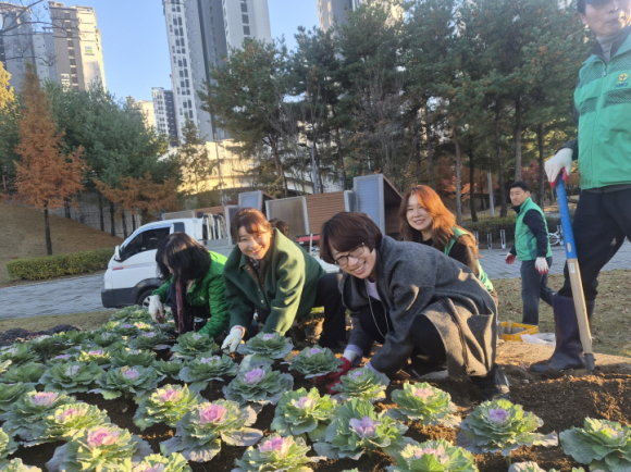 이날 새마을부녀회 회원 20여 명은 꽃양배추 800본을 심어, 겨울철에도 생동감 넘치는 아름다운 화단을 재정비하며 율곡동 안산공원에 따뜻한 겨울 분위기를 선사했다.
