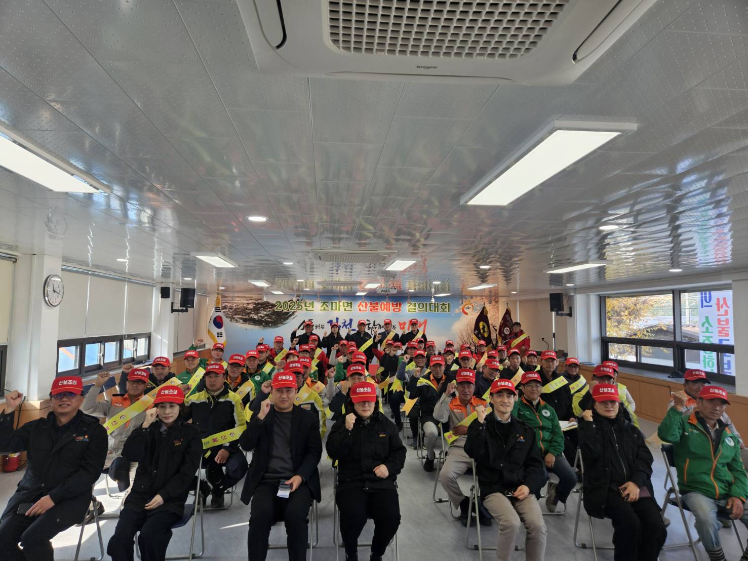 | 김천시 조마면(면장 김영백)은 11월 20일 조마면 행정복지센터 2층 회의실에서 이장협의회, 의용소방대, 자율방재단, 산불감시원 등 주민 100여 명이 참석한 가운데 2025년 산불방지 결의대회를 개최했다.