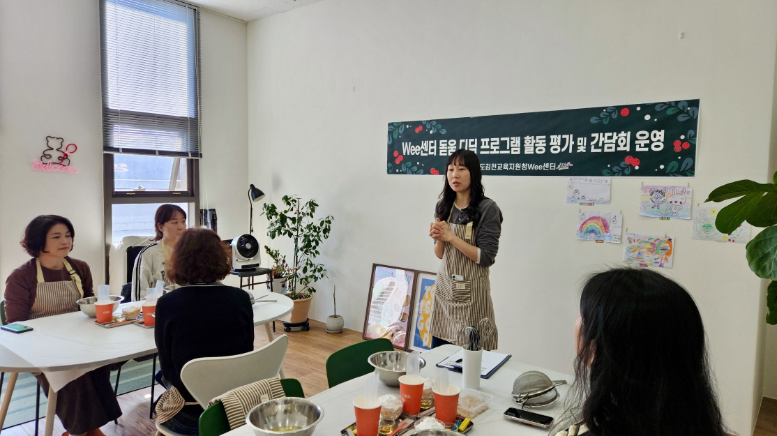 | 경상북도김천교육지원청(교육장 모태화) Wee센터는 11월 20일 삼층집 베이킹 스튜디오에서 돋움·디딤 프로그램 활동 평가 및 간담회를 운영하였다.
