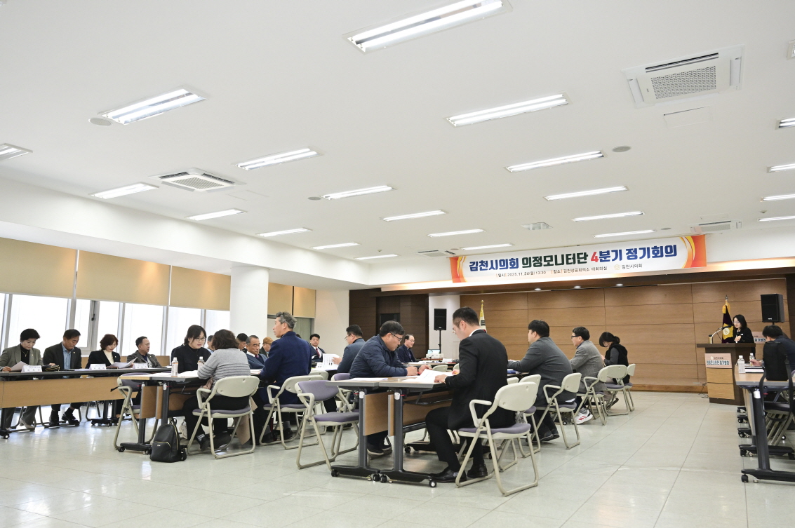 | 김천시의회(의장 나영민)는 지난 11월 24일 김천상공회의소 대회의실에서 의정모니터단 4분기 정기회의를 개최했다.