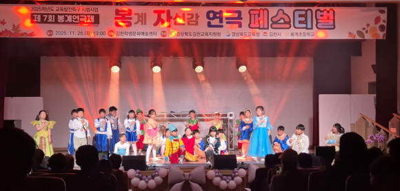 | 경북 김천 봉계초등학교(교장 최명숙)는 2025학년도 교육발전특구 시범사업(연극학교 사업)의 일환으로 11월 25일에 김천학생문화예술센터에서 교육 및 지역 관계자 10여 명, 전교생 및 유치원생 88명, 학부모 100여 명이 참석한 ‘2025 제7회 봉계 연극제 봉(계)자(신감) 페스티벌’을 열고 학생 중심 문화예술교육을 실현하였다. 이번 연극제는 학생들이 직접 참여하여 창의성과 표현력을 기르고, 또래 친구들과 협업하여 무대를 완성하는 과정을 통해 예술적 감수성과 자기 주도적 역량을 기르기 위해 마련되었다.