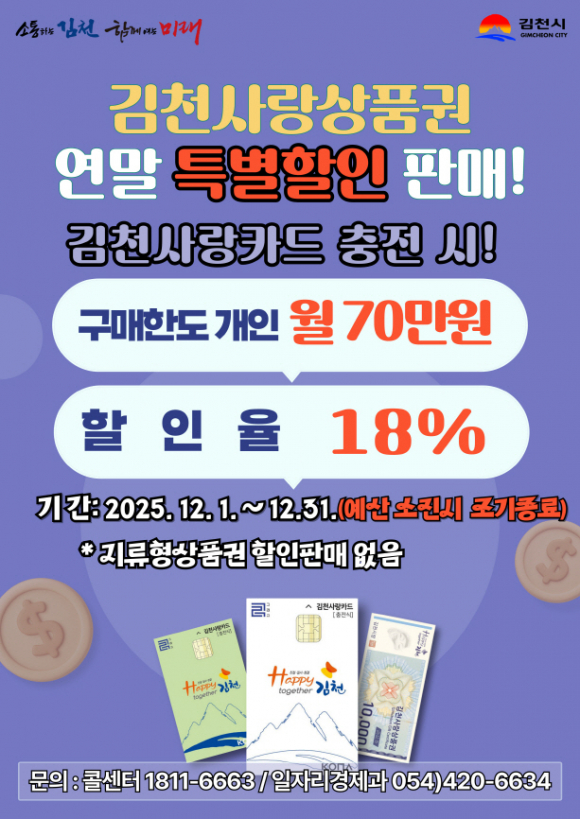 김천사랑상품권 12월 한 달 동안 18% 특별 할인판매