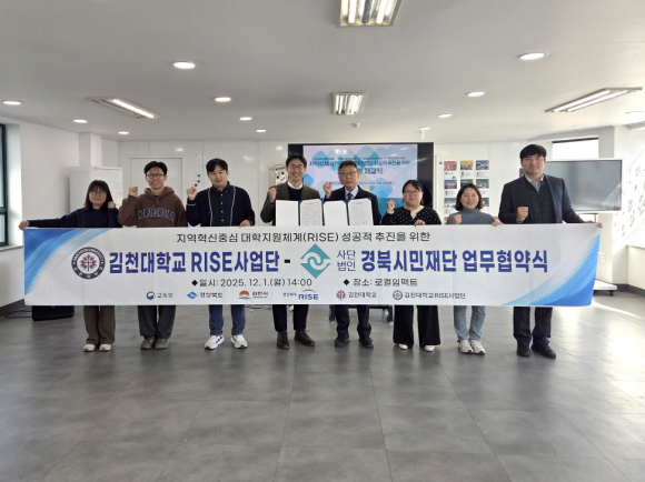김천대학교 RISE사업단 윤경식 단장은 “이번 협약은 단순 협력 수준을 넘어, 대학과 지역이 함께 성장하고 해결과제를 만들어가는 실질적 파트너십”이라며 “학생들의 현장 역량 강화는 물론, 지역사회 기여 모델을 함께 구축할 것”이라고 말했다.