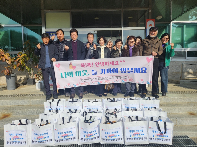 | 개령면지역사회보장협의체(위원장 박상도)가 12월 2일 지역 내 소외되고 어려운 이웃들을 위한 ‘똑똑!! 안부사업’으로 사랑의 안부 물품 전달 활동을 펼치며 지역사회에 훈훈함을 더했다.