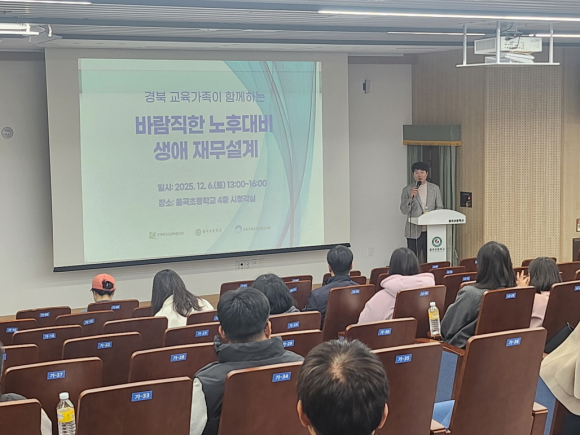 | 율곡초등학교(교장 김학신)는 12월 6일 오후 1시부터 4시까지 본교 4층 시청각실에서 『경북교육가족이 함께하는 경제특강』을 개최하였다. 이번 행사는 율곡초가 2025학년도 경제금융교육과정 선도학교로 지정되어 추진하는 다양한 행사 중 지역사회와 함께 경제·금융교육의 중요성을 확산하기 위해 마련된 자리이다.