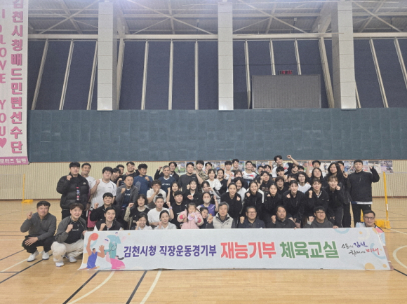 | 김천시(시장 배낙호)는 지난 12월 8일 김천종합스포츠타운 배드민턴경기장에서 관내 10여 개 배드민턴 클럽 회원 45명이 참여한 가운데 시청 직장운동경기부 배드민턴단 재능기부 체육교실을 성황리에 개최했다.