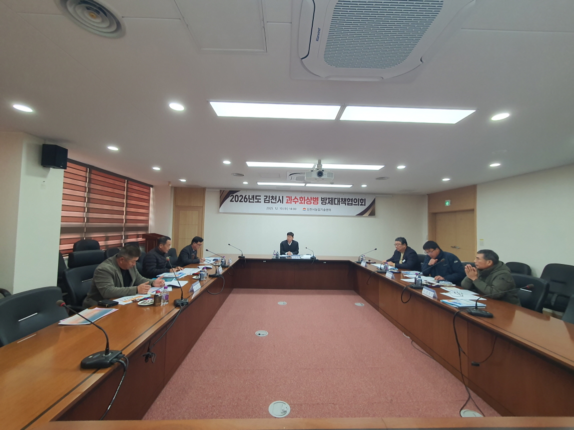 | 김천시는 12월 10일 농업기술센터에서 과수화상병 방제대책협의회를 개최하여 2026년도 과수화상병 예방 및 대응 방안을 논의했다.