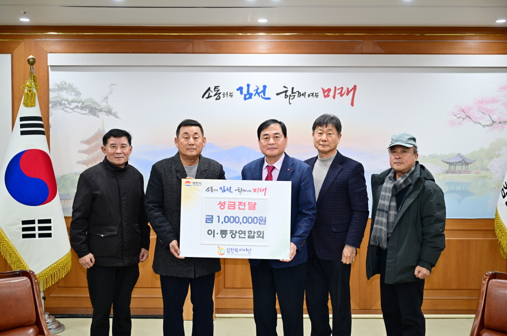 | 김천시 이·통장연합회(회장 박희중)는 12월 11일 김천복지재단에 이웃돕기 성금 100만 원을 기탁했다.