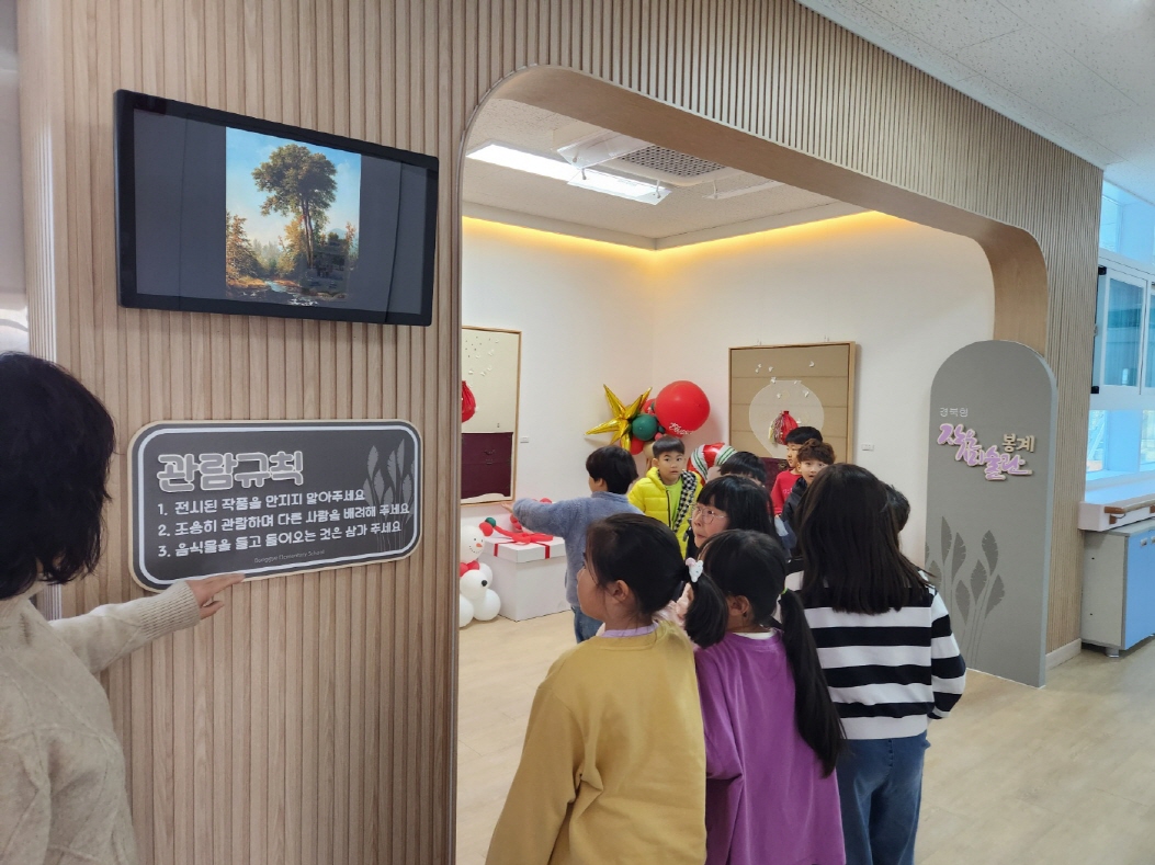 | 봉계초등학교(교장 최명숙)는 11월 17일 학교 복도 공간을 활용해 ‘2025 경북형 학교 안 작은 미술관’을 개관하였다. 이번 전시는 학생들의 창의적 예술 활동을 공유하고 지역사회와 소통하기 위한 목적으로 마련되었으며, 한국미술협회김천지부와 연계하여 회화 및 공예 작품 등 다양한 입체· 예술 작품이 전시된다.