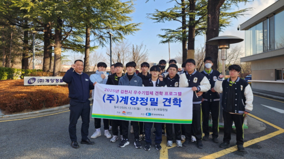 | 김천상공회의소(회장 안용우)는 지난 12월 15일 ‘2025년 김천시 우수기업체 견학프로그램’ 9차 과정 경북과학기술고등학교 재학생을 대상으로 공장 견학과 취업역량강화 특강을 진행했다.