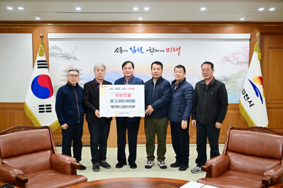 | 경북개인택시조합 김천시지부(지부장 이재성)는 12월 16일 김천시청을 방문해 형편이 어려운 지역 주민들이 연말을 따뜻하게 보냈으면 좋겠다며 회원들이 모은 성금 200만 원을 (재)김천복지재단에 전달했다.