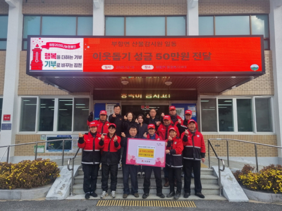 | 김천시 부항면 산불감시원 10명은 지난 12월 16일 연말연시를 맞아 지역사회에서 어려움을 겪는 이웃들을 위해 ‘희망2026나눔캠페인’성금으로 50만 원을 전달했다.