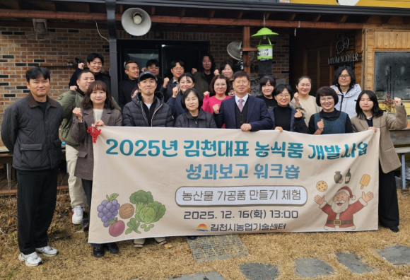 | 김천시는 지난 12월 16일, 농업기술센터 농촌생활관 1층 조리실습실 및 가공체험장(증산면)에서 「2025년 농식품 개발 성과 보고 워크숍」을 개최했다.