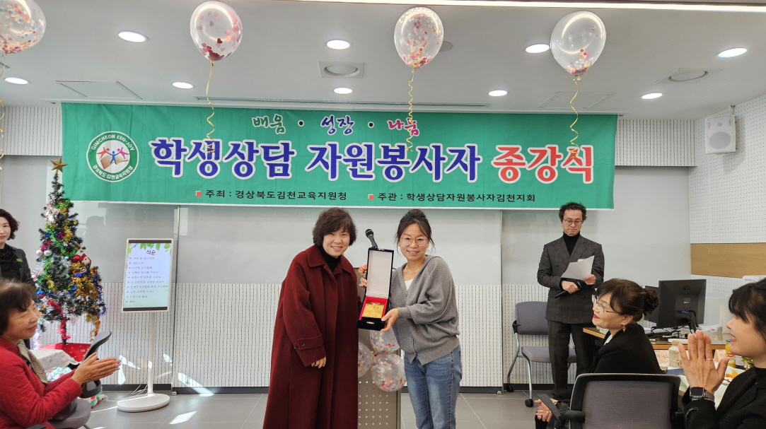 | 경상북도김천교육지원청(교육장 모태화) Wee센터는 12월 18일 김천교육지원청 Wee센터 3층 대회의실에서 학생상담자원봉사자 회원 30여 명이 참석한 가운데 2025학년도 종강식을 실시하였다.