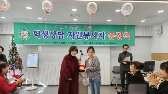 김천교육지원청 모태화 교육장은 “한 해 동안 학생상담자원봉사자 여러분께서 보여주신 헌신과 열정에 깊이 감사 드린다”며, “앞으로도 관내 학생들의 건강한 성장과 발달을 위해 변함없는 관심과 노력을 부탁드린다”고 전했다.