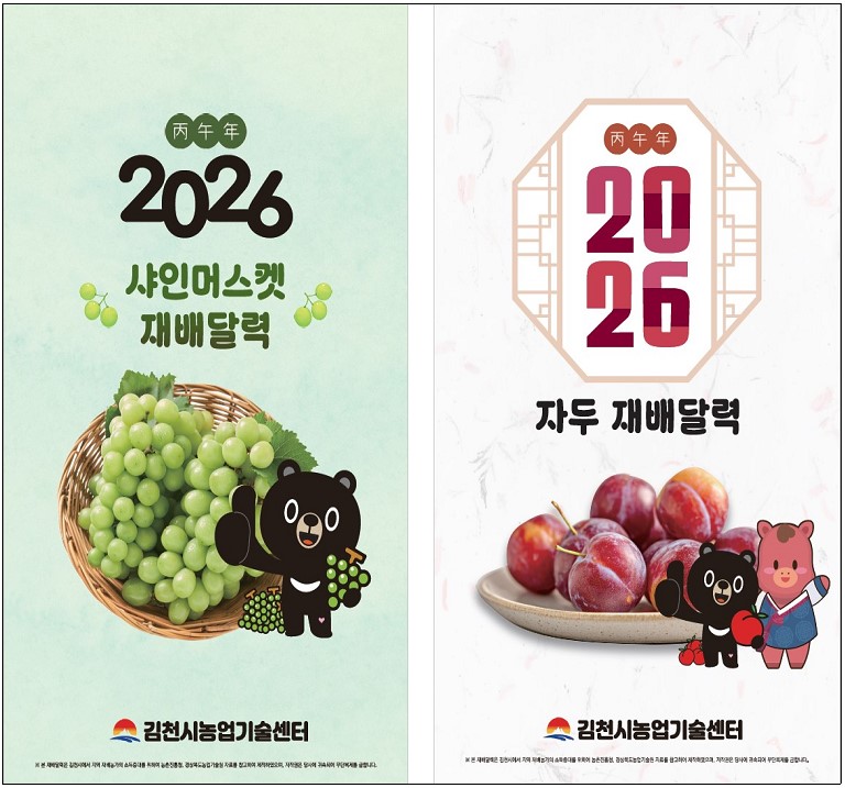 | 김천시는 포도·자두 농업인의 안정적인 생산과 품질 향상을 지원하기 위해 「2026년 샤인머스켓·자두 재배 매뉴얼 달력」 9,000부를 제작해 읍면동 행정복지센터를 통해 배부한다고 밝혔다.