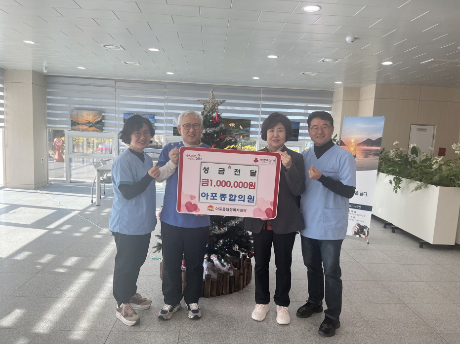 아포종합의원은 매년 연말연시 나눔 캠페인에 이웃돕기 성금을 꾸준히 기부하는 등 나눔 활동을 실천하고 있다. |