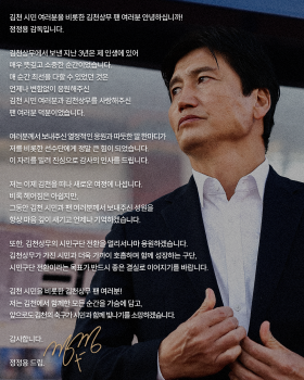 저는 이제 김천을 떠나 새로운 여정에 나섭니다. 비록 헤어짐은 아쉽지만, 그동안 김천 시민과 팬 여러분께서 보내주신 성원을 항상 마음 깊이 새기고 언제나 기억하겠습니다.