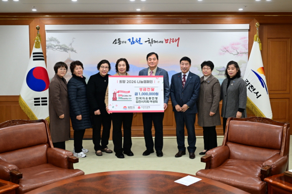 | 한국자유총연맹 김천시지회 여성회(지회장 여영각, 여성회장 박외선)는 12월 24일, 어려운 이웃을 돕기 위해 ‘희망2026 나눔캠페인’에 성금 100만 원을 기탁했다.